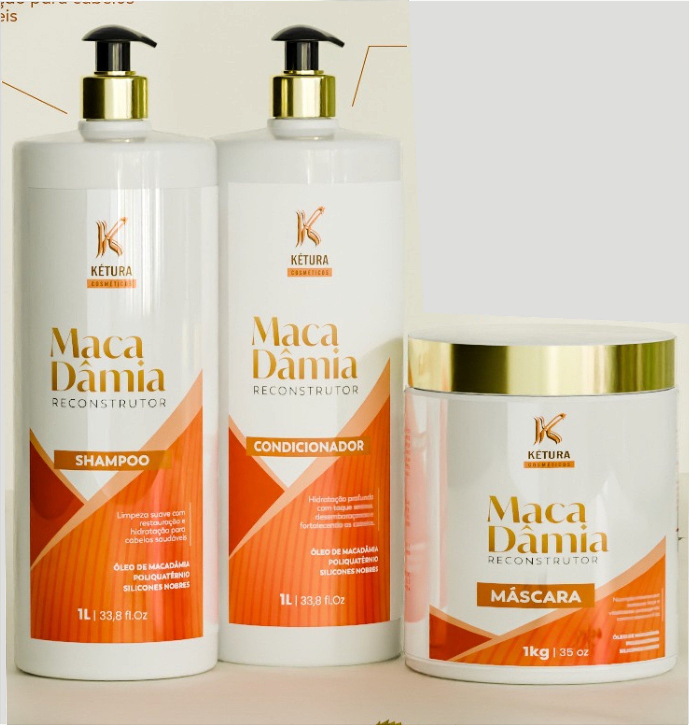 Desenvolvida a partir do óleo de Macadâmia, que possui um alto teor de Omega 7, ácidos graxos, vitaminas – B1, B2, B5, B6 e E, antioxidantes, aminoácidos e diversos minerais, possui um alto poder regenerativo das células capilares, garantindo um cabelo completamente renovado, principalmente os que passaram por procedimentos químicos, especialmente colorações devido ao seu poder de conservar a cor por muito mais tempo dentro do córtex. Reconstrói e lubrifica os fios, proporcionam sedosidade, maleabilidade, brilho, maciez, elasticidade, leveza e movimento natural aos cabelos.
